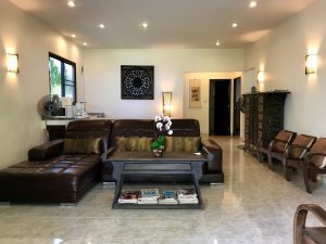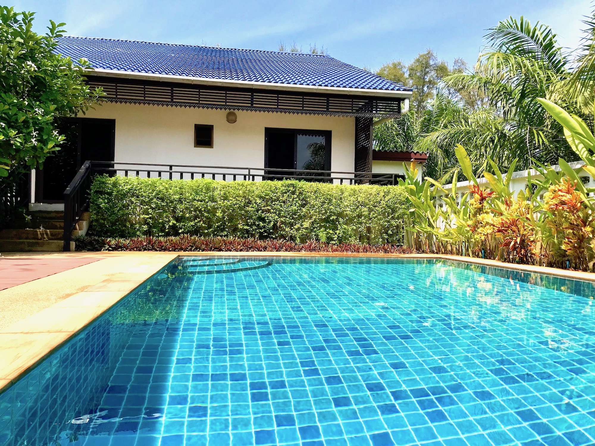 Villa with pool in a beautiful tropical garden, overlooking the ocean.